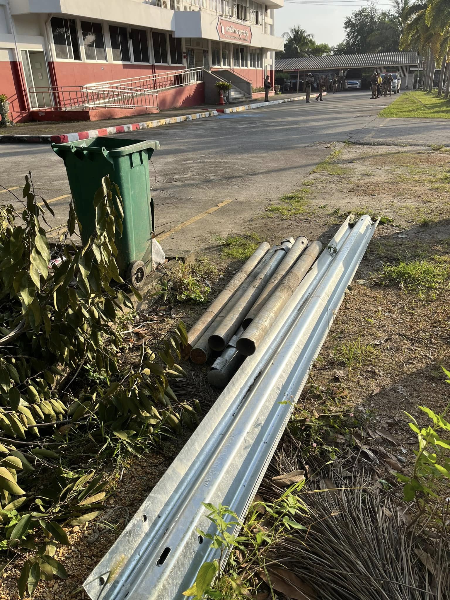 ได้ร่วมจับกุมผู้ต้องหาจำนวน 2ราย พร้อมด้วยของกลาง ราวกั้นทางโค้งถนน จำนวน 5 แผ่น