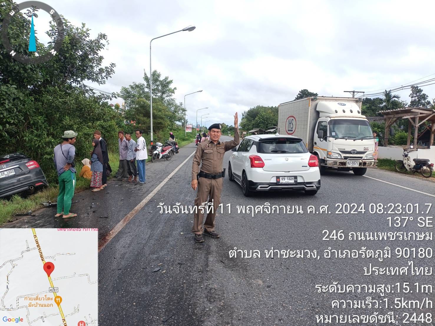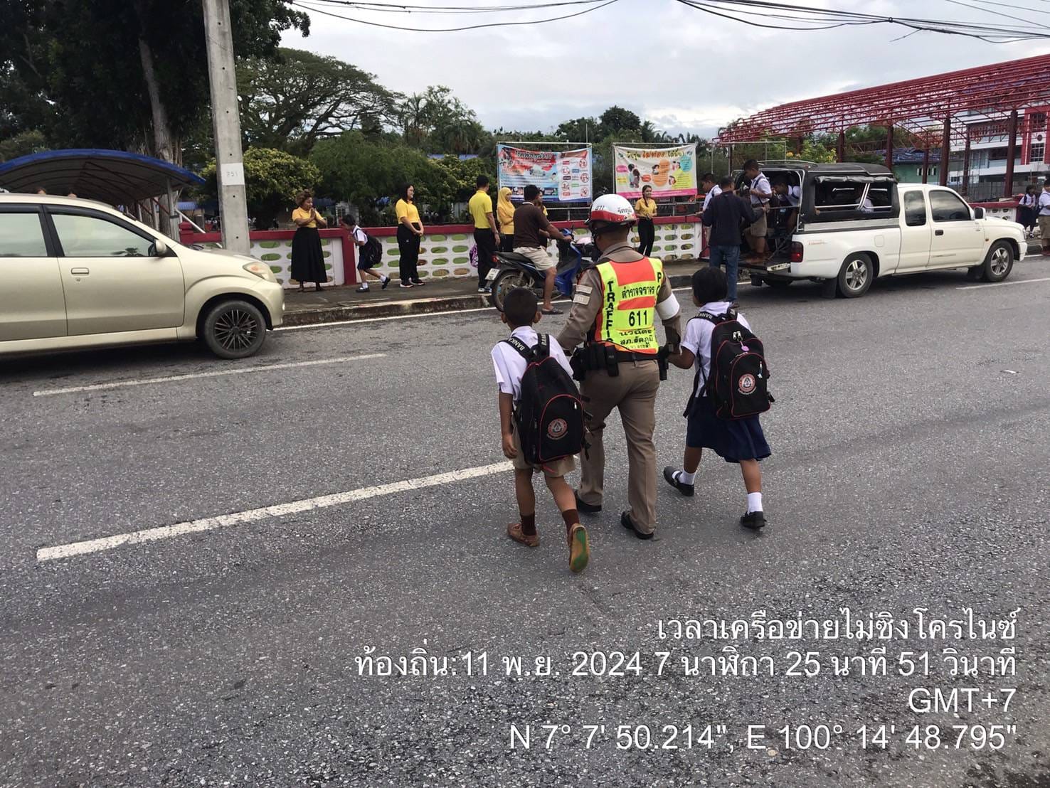 พ.ต.ต.พูนพงศ์ แสงจันทร์ศิริ สวป.(ชส.) สภ.รัตภูมิ , ด.ต.สุธรรม เกิดตลอด ผบ.หมู่ (ป.) สภ.รัตภูมิ ทำหน้าที่ จิตอาสา , ร.ต.อ.ดำรงค์ สินดำ รอง สว.(ป.) สภ.รัตภูมิ ทำหน้าที่ จราจร ,ร่วมกับฝ่าย ครู อำนวยความสะดวกด้านการจราจรแก่นักเรียน ผู้ปกครอง ตลอดผู้ใช้รถใช้ถนนเส้นทางยนตร์การกำธร และจัดระเบียบการจราจรช่วงเช้า หน้า ร.ร.บ้านกำแพงเพชร ม.3 ต.ท่าชะมวง อ.รัตภูมิ จว.สงขลา