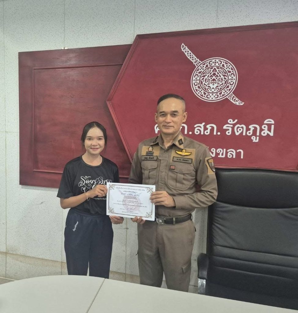 มอบหนังสือรับรองการฝึกประสบการณ์อาชีพ แก่นักเรียนโรงเรียนรัตภูมิวิทยา ณ ห้อง ศปก สภ.รัตภูมิ